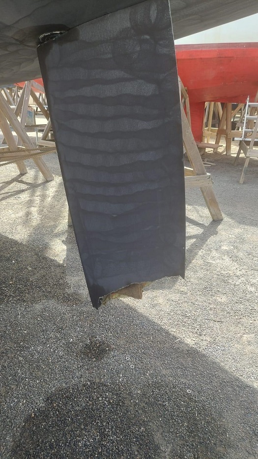 We tied up just before sunset, shaken but grateful to be in port. The next morning I put on a wetsuit, fired up my hookah dive compressor, and went over the side with a handsaw to finish removing the remains of the primary and Hydrovane rudders. The section of the primary rudder that had snapped remained attached by its fiberglass skin, which turned out to be fortunate as the yard in Almerimar, Spain was able to rebuild and re-bond the damaged section once we hauled out.