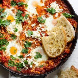 On July 19, 2021 / By Sandy ParksThis shakshuka recipe from feelgoodfoodie.net adds feta cheese giving a great flavor to this traditional Mediterranean egg dish. A one-skillet meal, eggs are covered in a spiced tomato ...