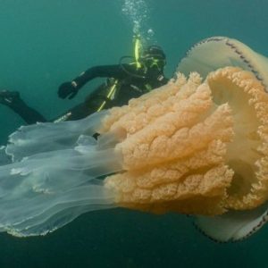 On July 26, 2019 / By Sandy Parks(CNN) – A giant jellyfish was spotted by divers off the coast of Falmouth, England. The barrel jellyfish are the largest species of jellyfish in British seas but ...