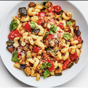 Pasta dishes can make for a great comfort food meal and this recipe from bonappetit.com brings in the fresh taste of summer by adding in eggplant, zucchini, peppers ...