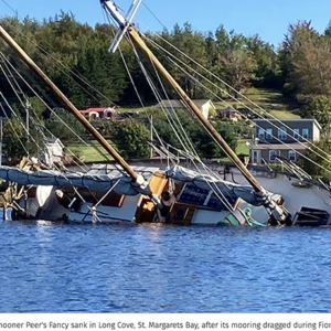 On October 13, 2022 / By Sandy Parks(sailwire.com) – A schooner sunk by post-tropical storm Fiona after the 48-year-old wooden sailboat’s mooring dragged in St. Margarets Bay, Nova Scotia was floated again this week by ...