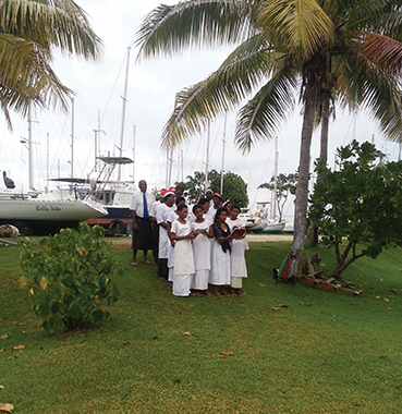 Planning on being in or around a marina for a special holiday is another way to find a community to celebrate with. We spent Christmas 2014 at Vuda Point Marina in Fiji, sitting out the South Pacific cyclone season. Many boaters take such opportunities to fly back to see relatives and friends but there were a few other hearty sailors who stayed, busy with boat maintenance and living on the hard. On Christmas Eve we all dressed for dinner and met on the lawn for sun downers and finger food. Resources were pooled and tables, chairs, decorations and music set the scene. At sunset the marina manager surprised us by arranging a visit by the marina staff who sang carols in Fijian. It was a lovely evening.